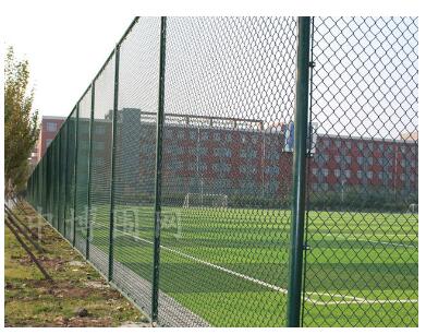 籃球場圍網樣式一:上下通卡鏈接勾花網圍網結構:上下橫管38或48mm,鋼筋棍,立柱48或60圓管 特點:安裝方便,造價低,美觀大方。 安裝流程:先將勾花網展平,然后穿插入鋼筋棍,上下橫管U型卡子固定鋼筋棍(利用防盜螺絲固定),通卡將立柱與橫管固定。