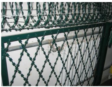(5)刀片刺網、縱向拉筋、冷拔鋼絲、支架抱箍、支架、螺母、墊圈等均需采用熱鍍鋅處理,鍍鋅量為270g/cm2。