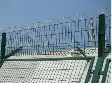 監獄護欄網也叫Y型安全防御網,是由V型支架立柱、加強焊接網片、防盜連接件和熱鍍鋅蛇腹式刺絲滾籠組成的安全防護性能很高的護欄網;監獄鋼網墻可平地安裝,也可在圍墻頂部二次安裝,有效防止翻越攀逃;由于監獄鋼網墻的安全性和嚇阻作用好,安裝方便、經濟耐用,所以非常適合用于特殊地帶(監獄、看守所)、軍事基地、邊防安全等重要地段的安全防護