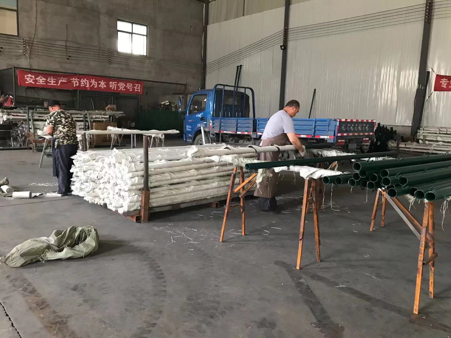 濟南客戶訂購的球場圍網正在打包中,下午發貨