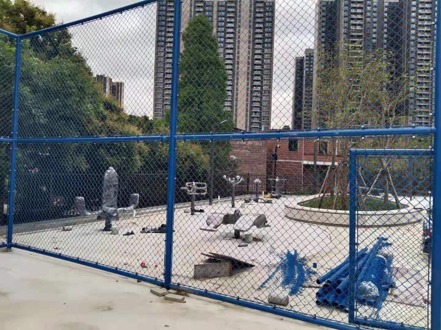 1、插管式籃球場圍網是組裝式圍網的一種展現形式、也叫套管式籃球場圍網、插管是連接立柱和橫桿的連接件、從而形成一個框架結構、將勾花網固定在框架結構上面、插管大概10厘米長、比橫桿稍細、可以插進橫桿里面、這種樣式的籃球場圍網安裝簡便、簡潔大方。