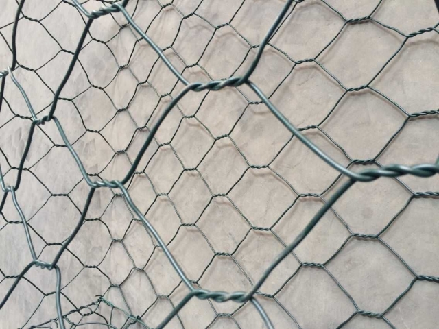 2.PVC鋅-5%鋁-混合稀土合金鋼絲:在鋅-5%鋁-混合稀土合金鋼絲的表面涂裝PVC保護層,然后編織成六角鐵絲網。這層PVC保護層將會大大增加在高污染環境中的保護,并且通過不同顏色的選擇,使其能和周圍環境融合。